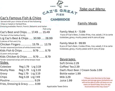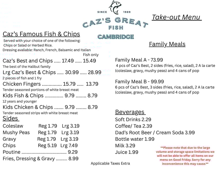 Take-out Good Friday Menu